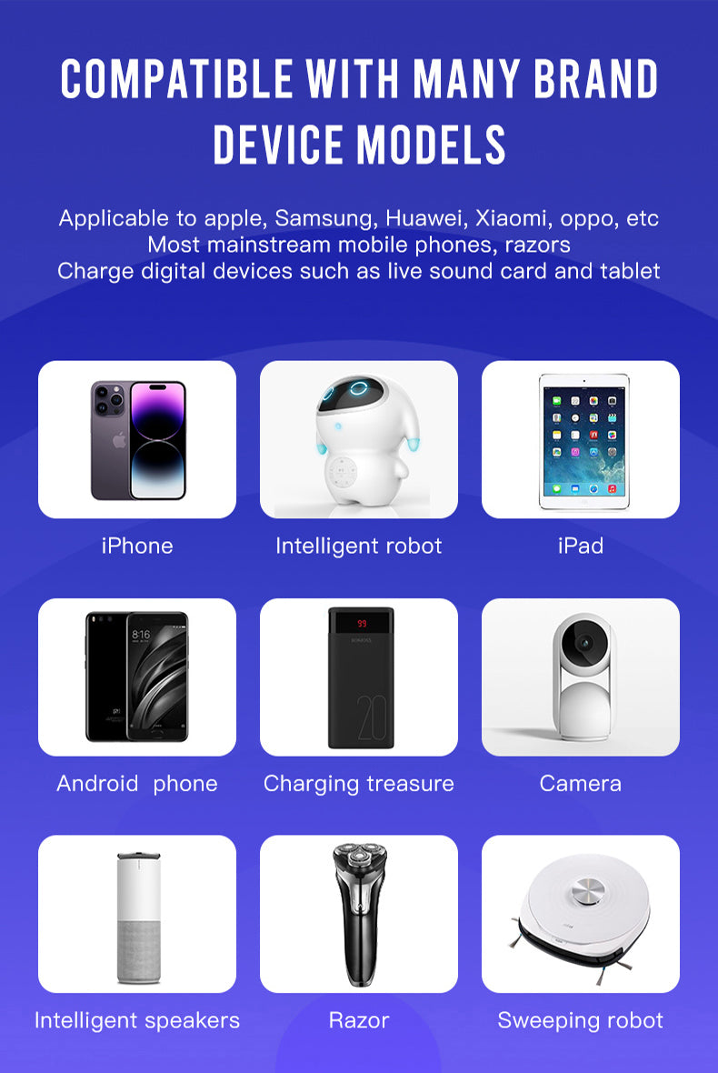 * Vi har genomfört interna tester på ett 2750mAh snabbladdningsbatteri med en laddhastighet på 1,5C, och använt maximal effekt för att bibehålla en temperaturgräns på 40°C för alla laddningstillämpningar. Resultaten visade att vår strömadapter laddar från 0% till 50% på rekordtid.